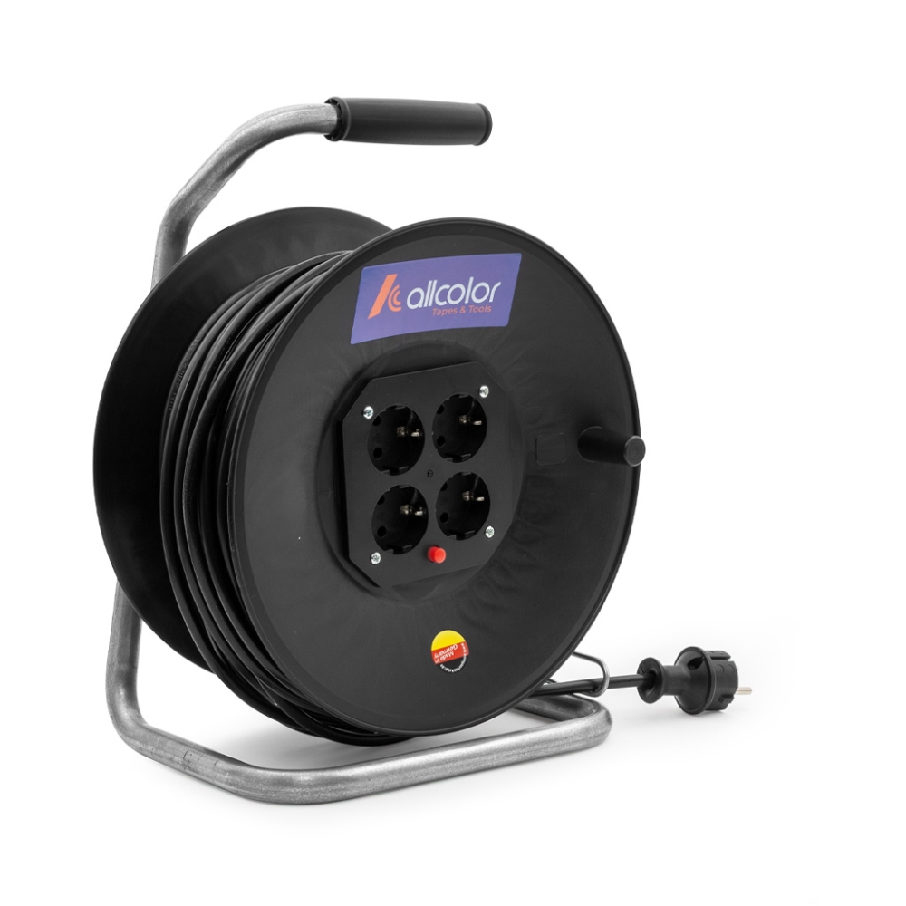 Kabeltrommel mit 50 m schwarzem Kabel, für innen, Made in Germany.