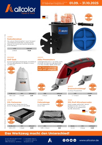 © allcolor Malerbedarf GmbH – 2025. *Dieser Preis ist gültig pro Stück bei Abnahme einer Verpackungseinheit. Druckfehler, Irrtümer, Preisänderungen und Farbabweichungen vorbehalten. Alle Preise in Euro und in Netto.