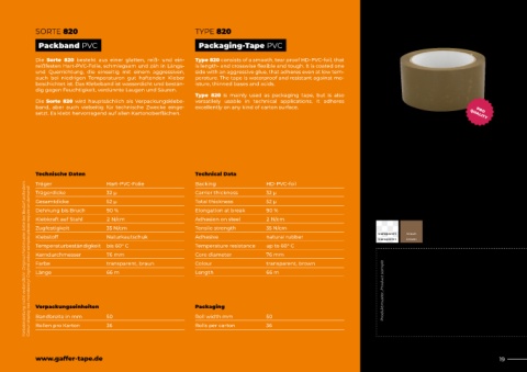 Die Sorte 820 wird hauptsächlich als Verpackungsklebe-  versatilely usable in technical applications. It adheres
