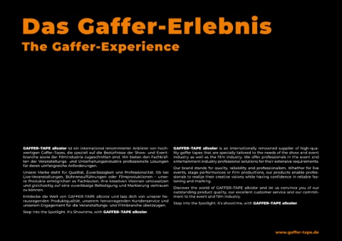 GAFFER–TAPE allcolor ist ein international renommierter Anbieter von hoch-  GAFFER–TAPE allcolor is an internationally renowned supplier of high-qua-