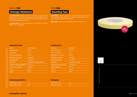 Die Sorte 720 besteht aus einem 0,8 mm dicken weißen Type 720 is made of a 0,8 mm thick white PE-foam which