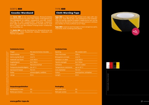 frei entfernbar ist. Type 650 is used as warning tape to mark dangerous parts,