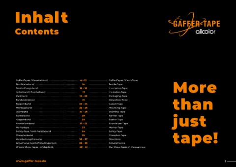 Gaffer-Tapes / Gewebeband  ...........................  4 – 13  .................. Gaffer-Tapes / Cloth-Tape