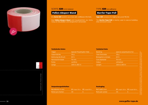 Die Sorte 520 besteht aus einer sehr reißfesten PE-Folie. Type 520 consists of a highly tear proof PE foil.