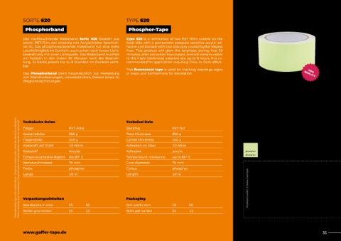 Das nachleuchtende Klebeband Sorte 620 besteht aus Type 620 is a lamination of two PET films coated on the