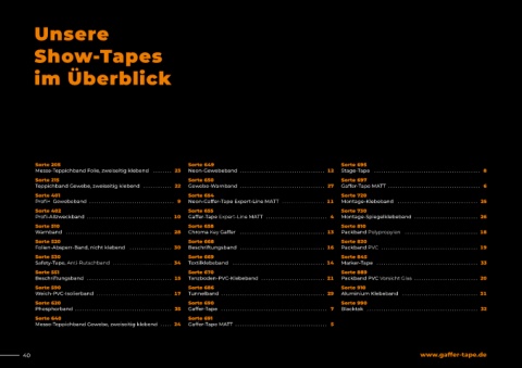 Profi+ Gewebeband .................................... 9 Neon-Gaffer-Tape Expert-Line MATT ................... 11 Montage-Klebeband .................................. 25