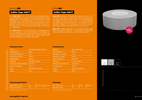 Klebeband  ist  hochreißfest.  Die  Sorte 691 hat  eine  matte     it is easy to tear by hand. The tape has a good adhesion.