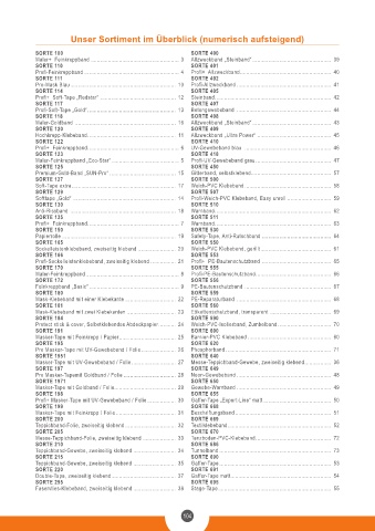Double-Tape, zweiseitig klebend ......................................... 37 Gaffer-Tape matt ................................................................ 54