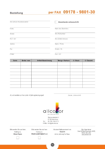 Ihre allcolor-Kundennummer: Abweichende Lieferanschrift:
