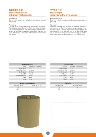 Die Sorte 181 ist ein leicht imprägniertes Abdeckpapier mit zwei    Type 181 is a slightly impregnated masking paper provided with two
