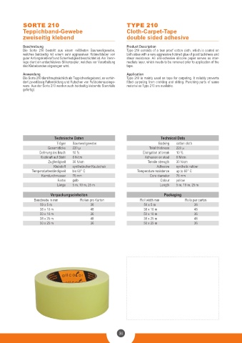 Die Sorte 210 dient hauptsächlich als Teppichverlegeband, es verhin- Type 210 is mainly used as tape for carpeting. It reliably prevents