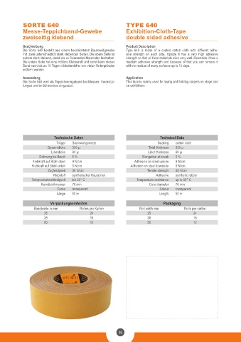 Die Sorte 640 wird als Teppichverlegeband bei Messen, Veranstal- This tape is mainly used for laying and holding carpets on stage and