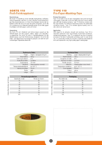 re abgestimmt. Die Sorte 110 wird im Autolackierbereich für alle    painters and plasterers. Type 110 is suitable for any kind of masking