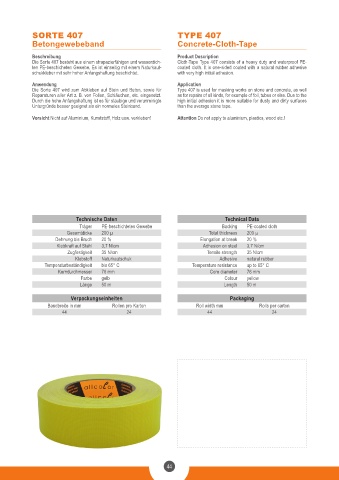 Die Sorte 407 besteht aus einem strapazierfähigen und wasserdich- Cloth-Tape Type 407 consists of a heavy duty and waterproof PE-