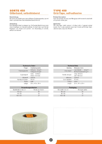 Die Sorte 450 besteht aus einem reißfesten Glasfasergewebe, das mit Type 450 is made of a tear proof fibreglass reinforcement coated with