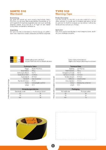 Die Sorte 510 wird als Warnband zur Kennzeichnung von gefährli- Type 510 is used as warning-tape to mark dangerous parts, machi-