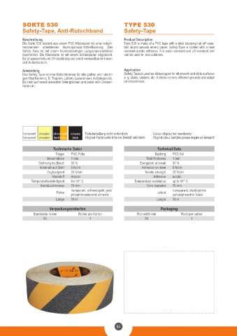 Die Sorte 530 besteht aus einem PVC-Klebeband mit einer rutsch- Type 530 is made of a PVC tape with a slide stopping rub off resis-