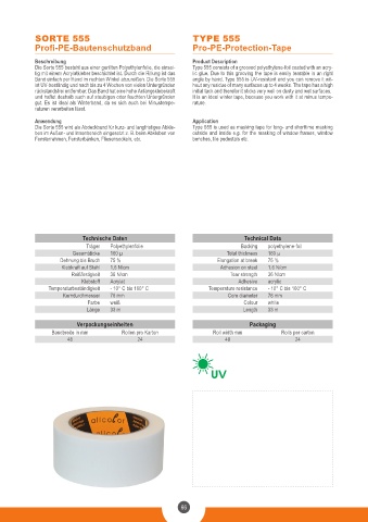 Die Sorte 555 wird als Abdeckband für kurz- und langfristiges Abkle- Type 555 is used as masking tape for long- und shorttime masking