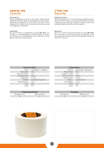 Die Sorte 705 dient zur Bauteiltrennung gemäß DIN 18340. Zum Type 705 is used for component-separation according DIN 18340.