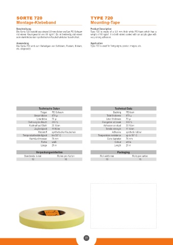 Die Sorte 720 besteht aus einem 0,8 mm dicken weißen PE-Schaum Type 720 is made of a 0,8 mm thick white PE-foam which has a