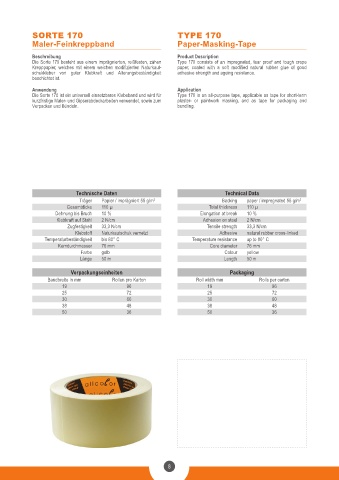 Die Sorte 170 ist ein universell einsetzbares Klebeband und wird für   Type 170 is an all-purpose tape, applicable as tape for short-term