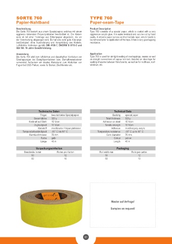 Die Sorte 760 wird zum luftdichten und dauerhaften Verkleben von Type 760 is used for air-tight sealing of overlappings, seams as well