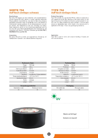 Die Sorte 794 wird zur wind- und regensicheren Verklebung von Type 794 is used for wind- and rainproof bonding of facade and
