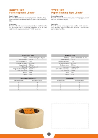 Die Sorte 172 ist ein Allzweckpapierklebeband und wird für einfache   Type 172 is an all-purposes paper tape used on simple and short-