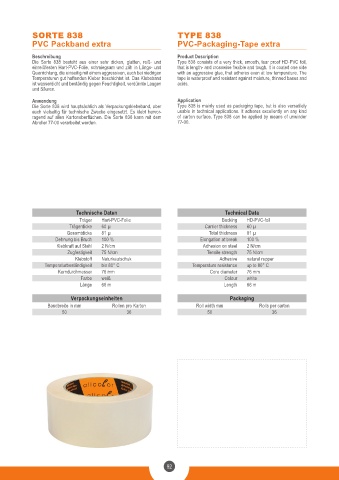 Die Sorte 838 wird hauptsächlich als Verpackungsklebeband, aber Type 838 is mainly used as packaging tape, but is also versatilely