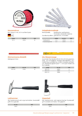 Entlüftungswalzen | Putzerhaken | Bautenschlüssel | Maurerwerkzeug Maurerwerkzeug | Wasserwaage | Latthammer | Gipserbeil 99