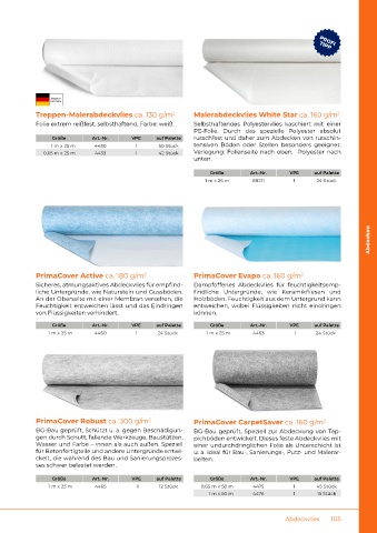 PrimaCover Robust ca. 300 g/m 2 PrimaCover CarpetSaver ca. 160 g/m 2