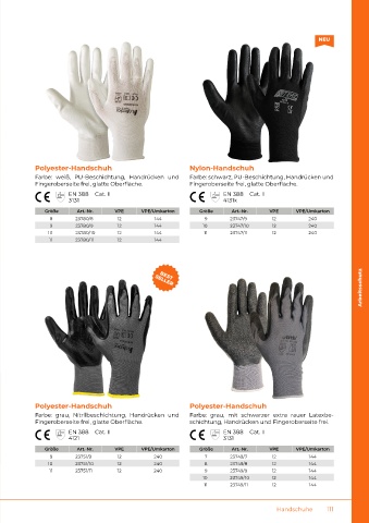 Farbe: weiß, PU-Beschichtung, Handrücken und Farbe: schwarz, PU-Beschichtung, Handrücken und