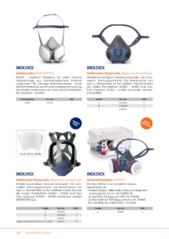 Gas- u. Partikelfilter ist frei wählbar. Hierfür können - Maskenkörper Halbmaske, EasyLock Bajonett-