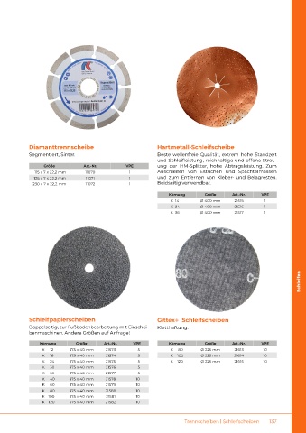 Schleifteller & Schuhe – Schleifen von mineralischen Belägen Trennscheiben | Schleifscheiben 137