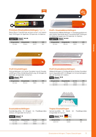 Messer | Skalpell | Vlies- & Folienschneider | Ersatzabbrechklingen Ersatzabbrechklingen | Trapez-Ersatzklingen 71