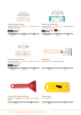 72 Trapez-Ersatzklingen | Haken-Ersatzklingen | Schaber