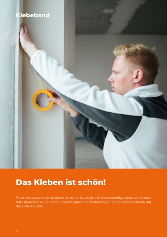 Klebeband Das Kleben ist schön! Finde das passende Klebeband für deine Baustelle. Ob UV-beständig, wieder entfernbar oder dauerhaft klebend, mit unseren qualitativ hochwertigen Klebebändern bist du auf der sicheren Seite. 6