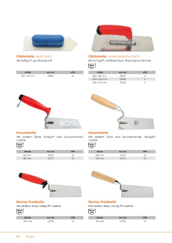Mit steifem Blatt, Softgriff, rostfrei. Mit steifem Blatt, Holzgriff, rostfrei.