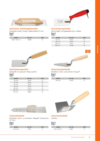 Rostfreier Stahl, Holzgriff, Blattstärke 0,7 mm. Mit Softgriff, mit geradem Hals, rostfrei.